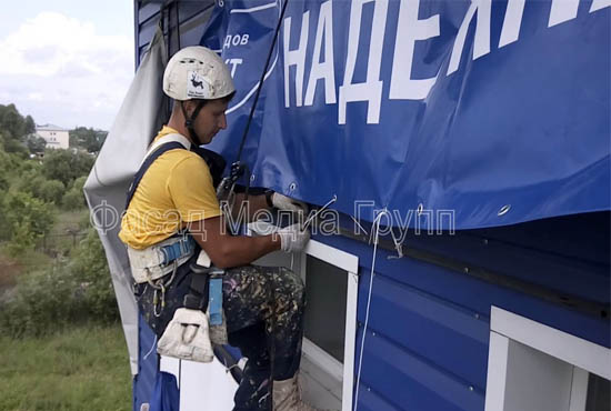 Как видим, промышленный альпинизм обладает своими преимуществами в рекламной сфере. Дополнительно необходимо отметить, что, зачастую, промышленный альпинизм является единственным средством установить или демонтировать рекламную конструкцию.