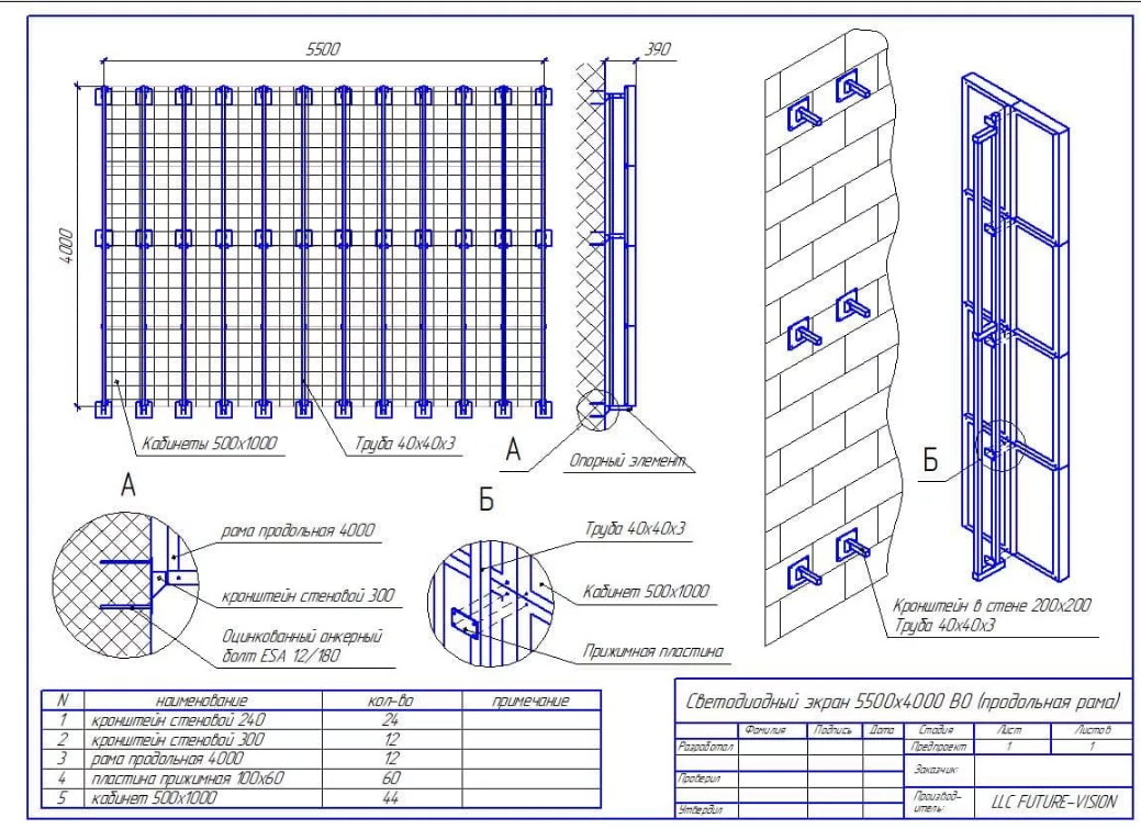 Изготовление видеоэкранов можно разделить на несколько этапов: