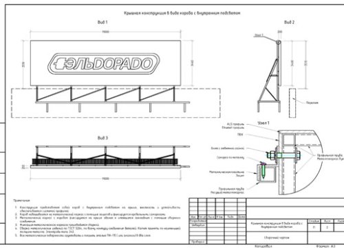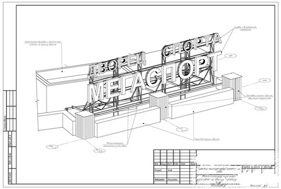 Процесс проектирования вывески разбивается на несколько этапов. К основным этапам проектирования указанной рекламной конструкции относятся: