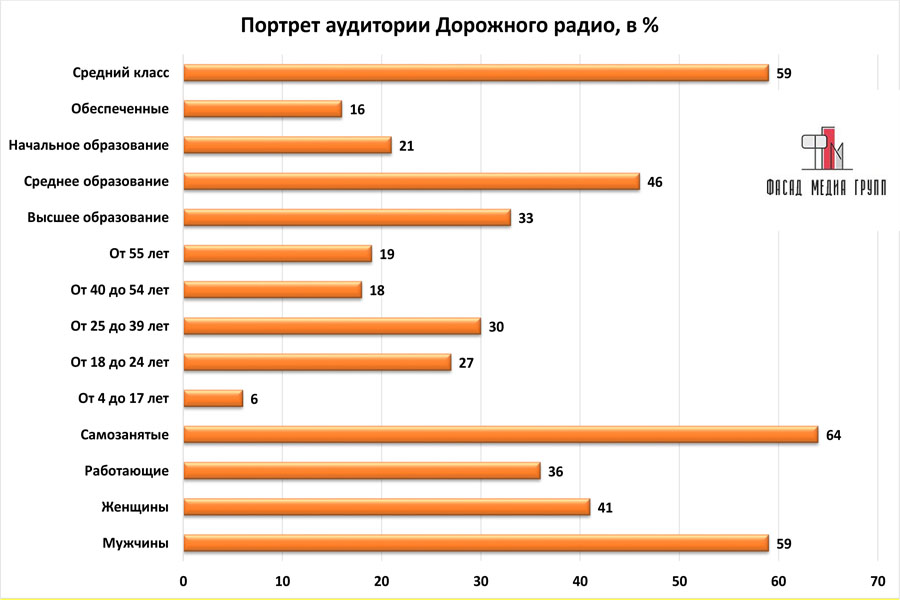 Благодаря качественному, сбалансированному контенту аудитория «Дорожного радио» многочисленна и разнообразна.