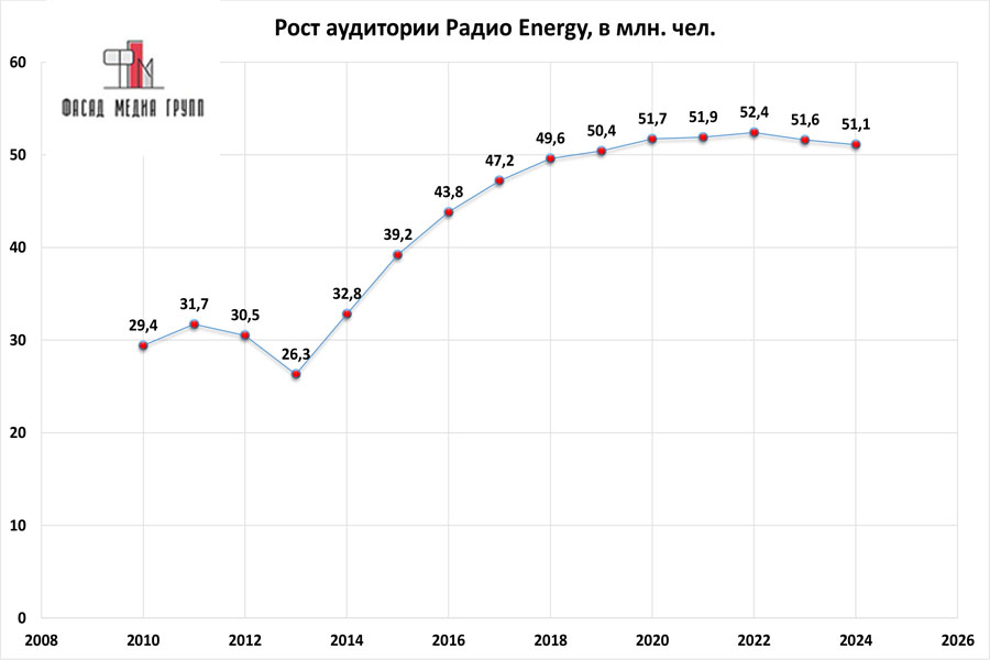 Показатели аудитории «Радио Энерджи» по России:
