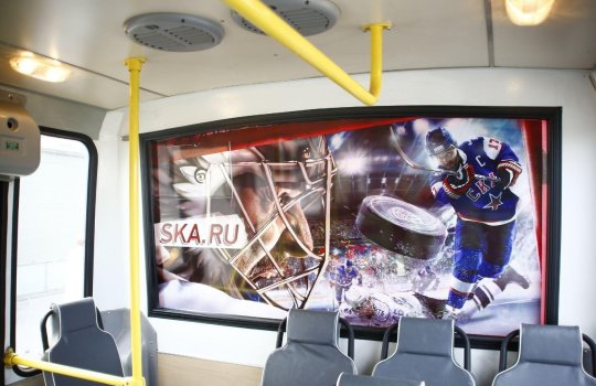 Брендирование салона троллейбуса на фото выше