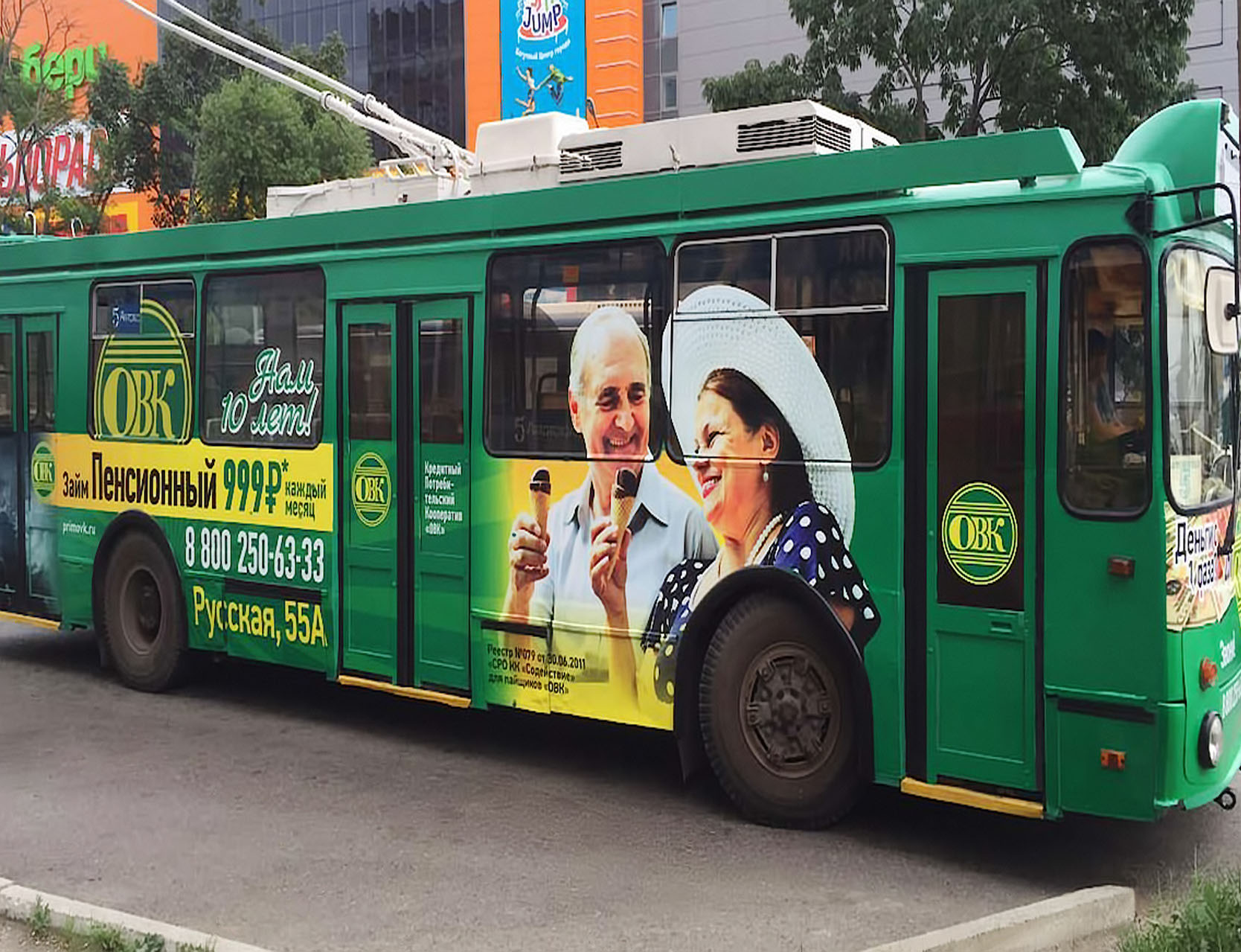 Оклейка правого борта троллейбуса на фото выше
