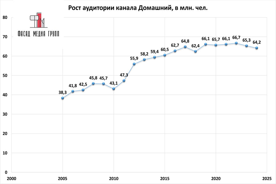 Популярность телеэфира на «Домашнем» приводит к ежегодному увеличению спроса на рекламное время. Для привлечения клиентов из разных регионов России, увеличения процента продаж, повышения имиджа компании и узнаваемости бренда – размещайте рекламу на «Домашнем». «Домашний» – это проверенный и востребованный канал для размещения рекламы на тихвинском ТВ. Для размещения рекламы на телевидении обращайтесь в рекламное агентство «Фасад Медиа Групп». Будем рады сотрудничеству.