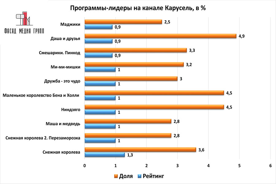 Популярность телеэфира на «Карусели» приводит к ежегодному увеличению спроса на рекламное время. Для привлечения клиентов из разных регионов России, увеличения процента продаж, повышения имиджа компании и узнаваемости бренда – размещайте рекламу на «Карусели». «Карусель» – это проверенный и востребованный канал для размещения рекламы на тихвинском ТВ. Для размещения рекламы на телевидении обращайтесь в рекламное агентство «Фасад Медиа Групп». Будем рады сотрудничеству.