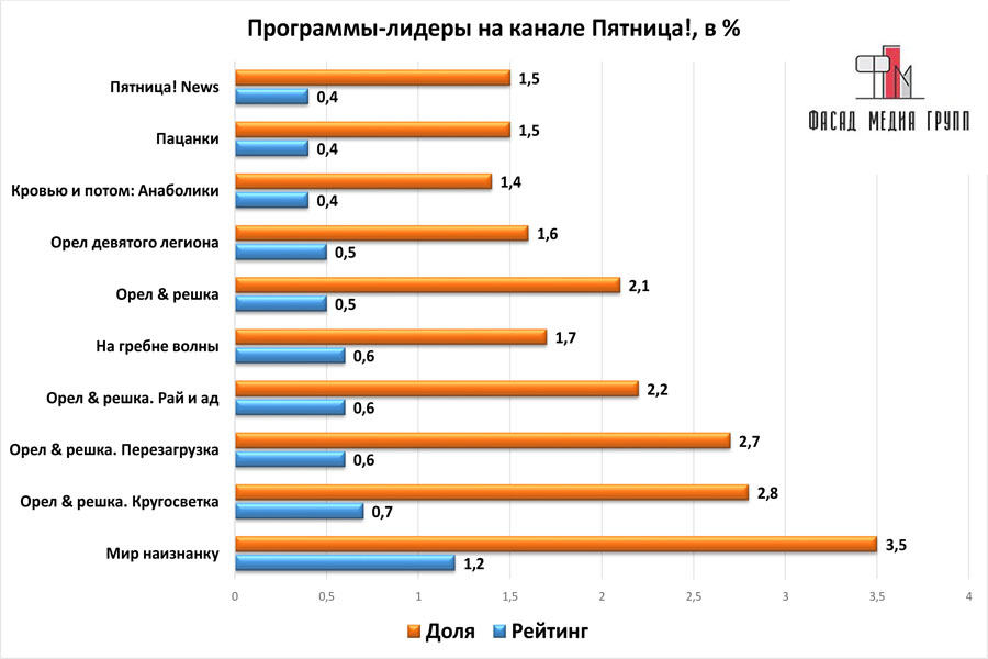 Внимание! Концепция бренда телеканала «Пятница!» выстроена вокруг программ о путешествии, отдыхе, еде, шопинге, красоте, экспертизе сферы услуг.