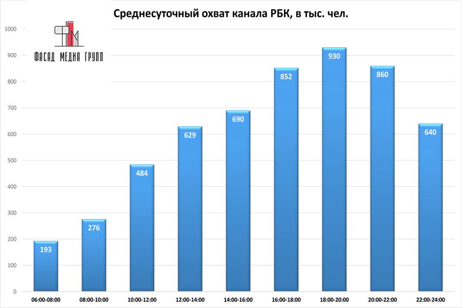 Популярность телеэфира на «РБК» приводит к ежегодному увеличению спроса на рекламное время. Для привлечения клиентов из разных регионов России, увеличения процента продаж, повышения имиджа компании и узнаваемости бренда – размещайте рекламу на «РБК». «РБК» – это проверенный и востребованный канал для размещения рекламы на тихвинском ТВ. Для размещения рекламы на телевидении обращайтесь в рекламное агентство «Фасад Медиа Групп». Будем рады сотрудничеству.