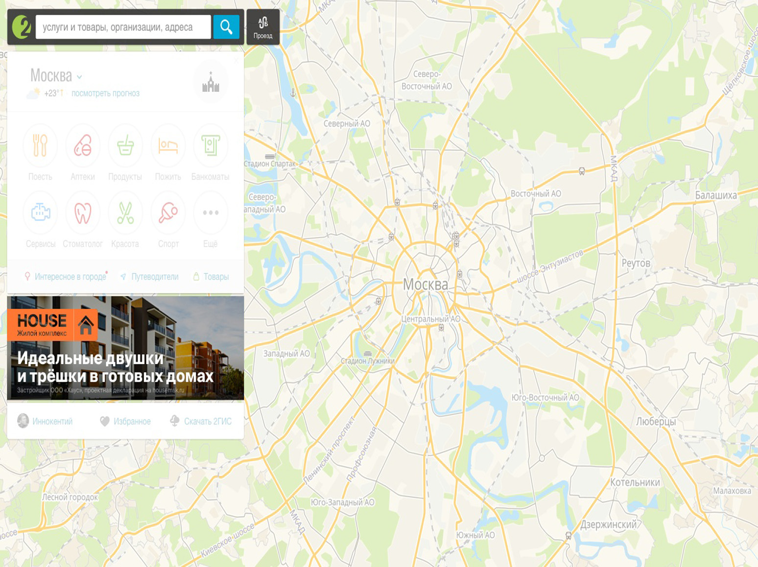 В 2ГИС (Двагис, ДубльГис) доступна геореклама – контекстная и медийная реклама, которую видит пользователь с учетом географии его интересов или текущего местоположения.