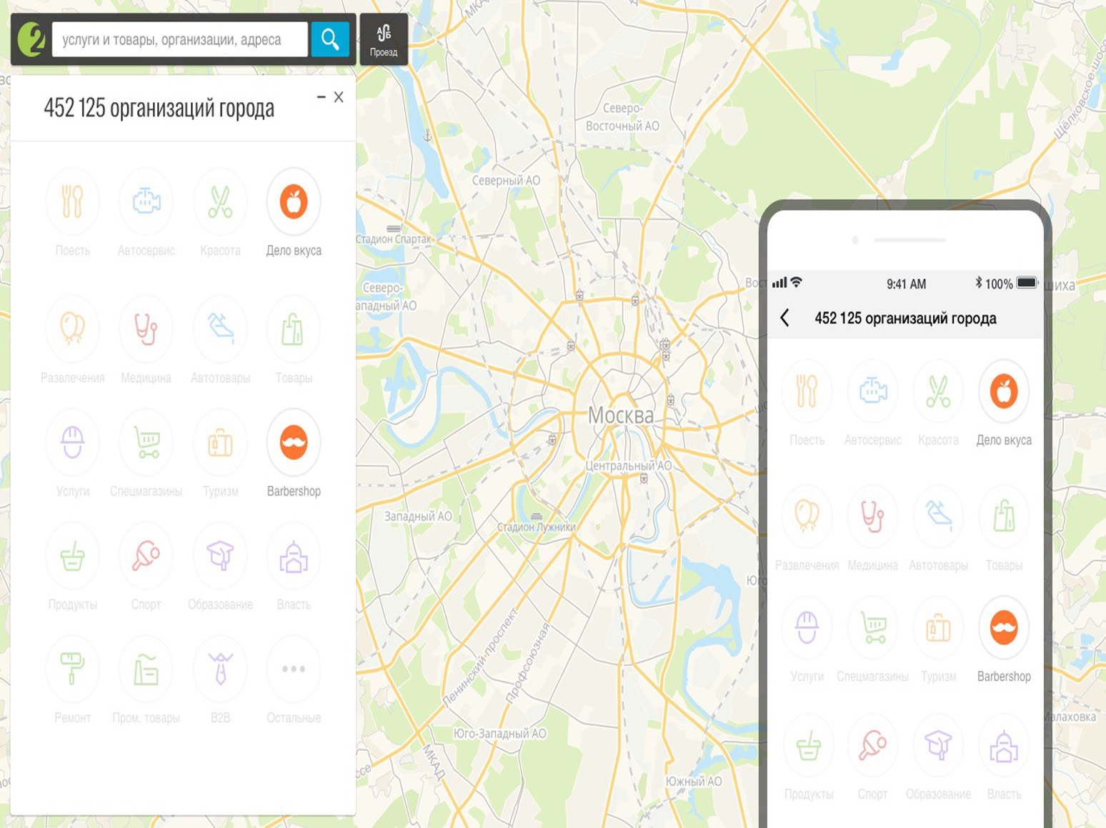 2ГИС работает более чем в 390 городах, а месячная аудитория превышает 50 миллионов пользователей. Сервис ежедневно обрабатывает более 2,2 млн поисковых запросов.