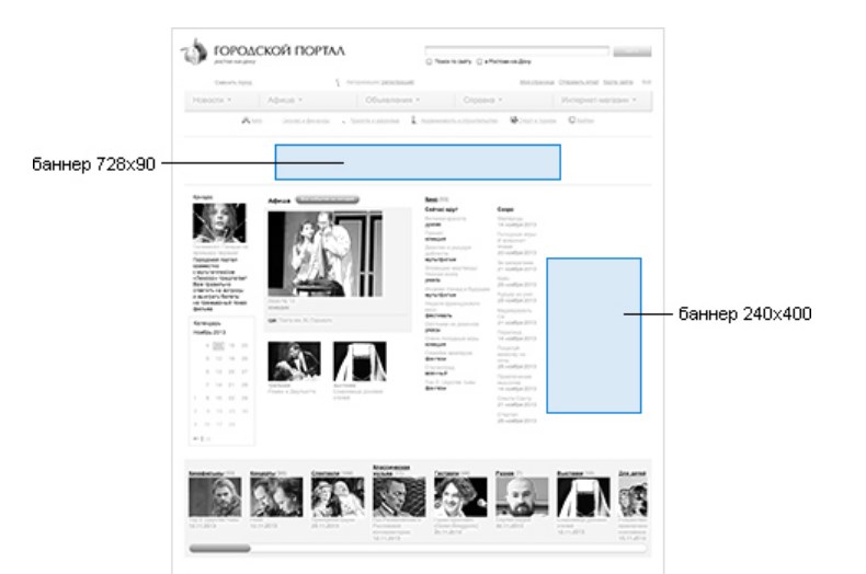 Городской интернет-портал предоставляет широкие возможности рекламодателю для размещения рекламы в Интернете: