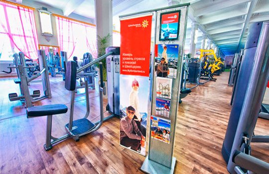 Реклама в фитнес-клубах отличается тем, что рекламные материалы располагаются на уровне глаз потенциального клиента или покупателя. Удачное расположение рекламы приводит к тому, что листовки, буклеты и другие форматы рекламы в фитнес-клубах хорошо видны и обеспечивают 100% читаемость со стороны посетителей.