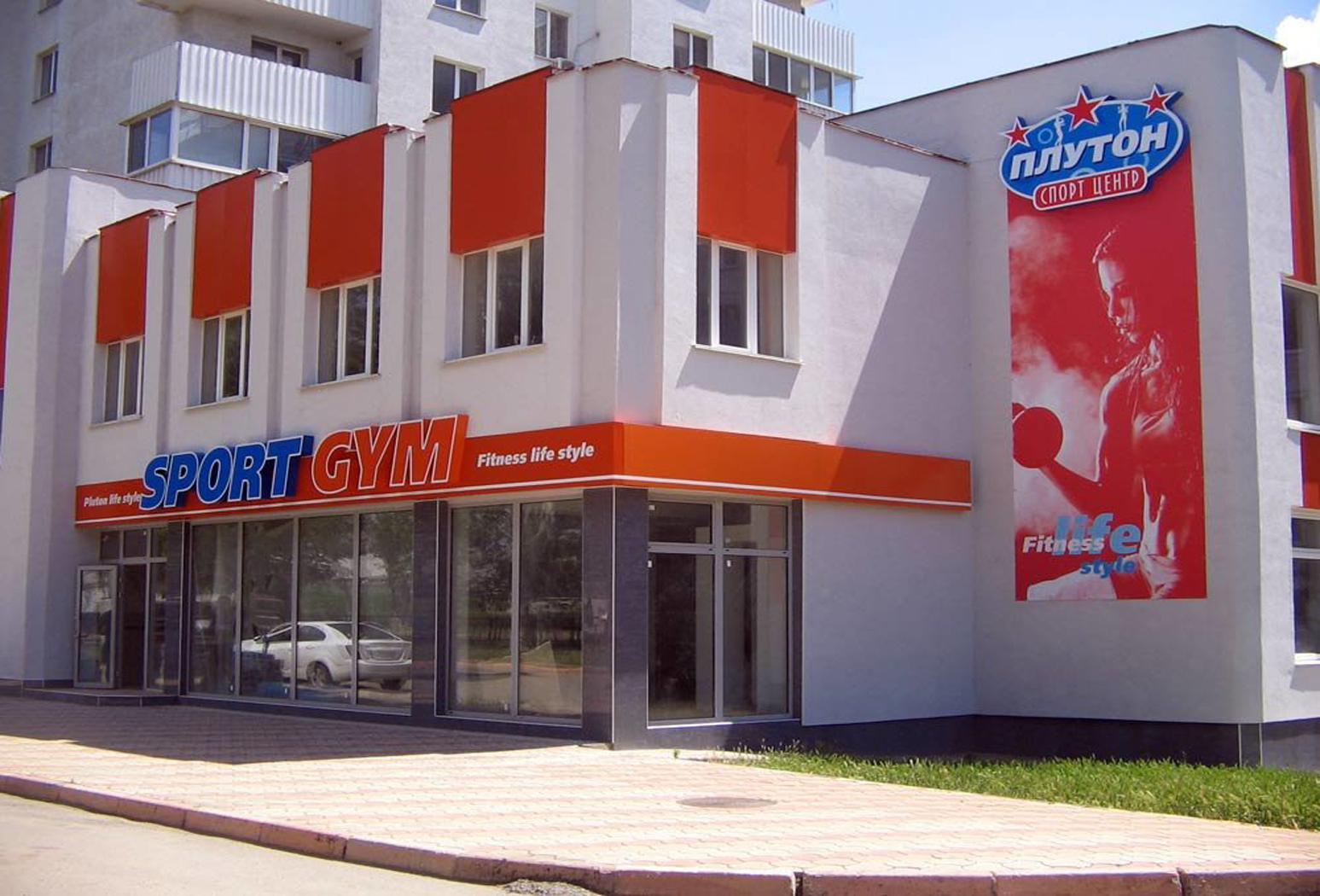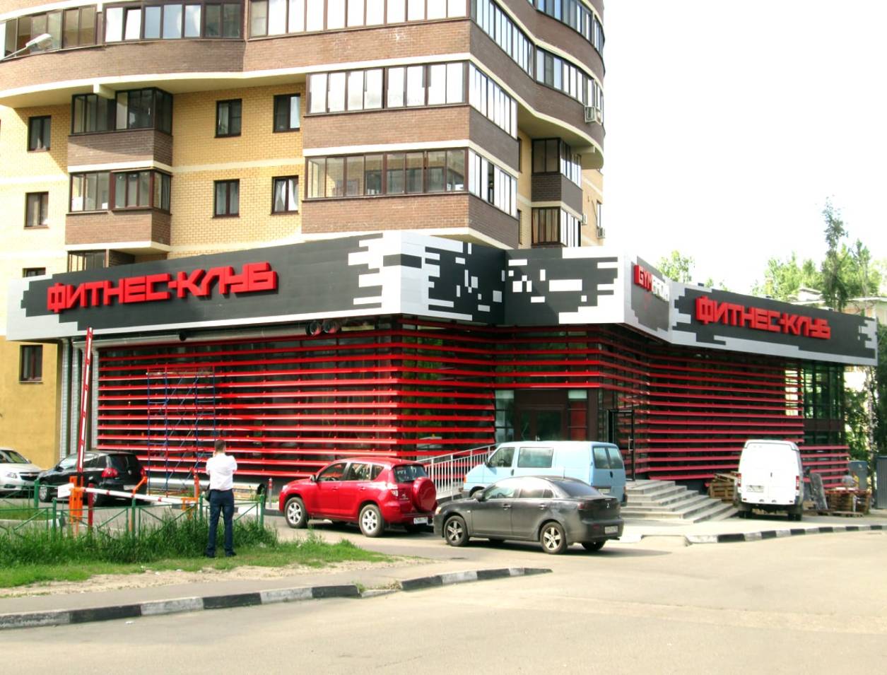 Пример рекламного баннера на здании фитнес-клуба: