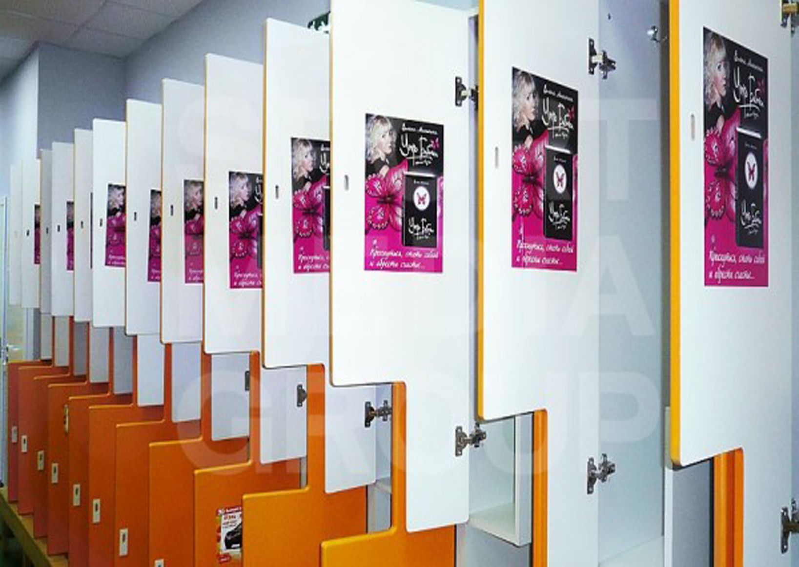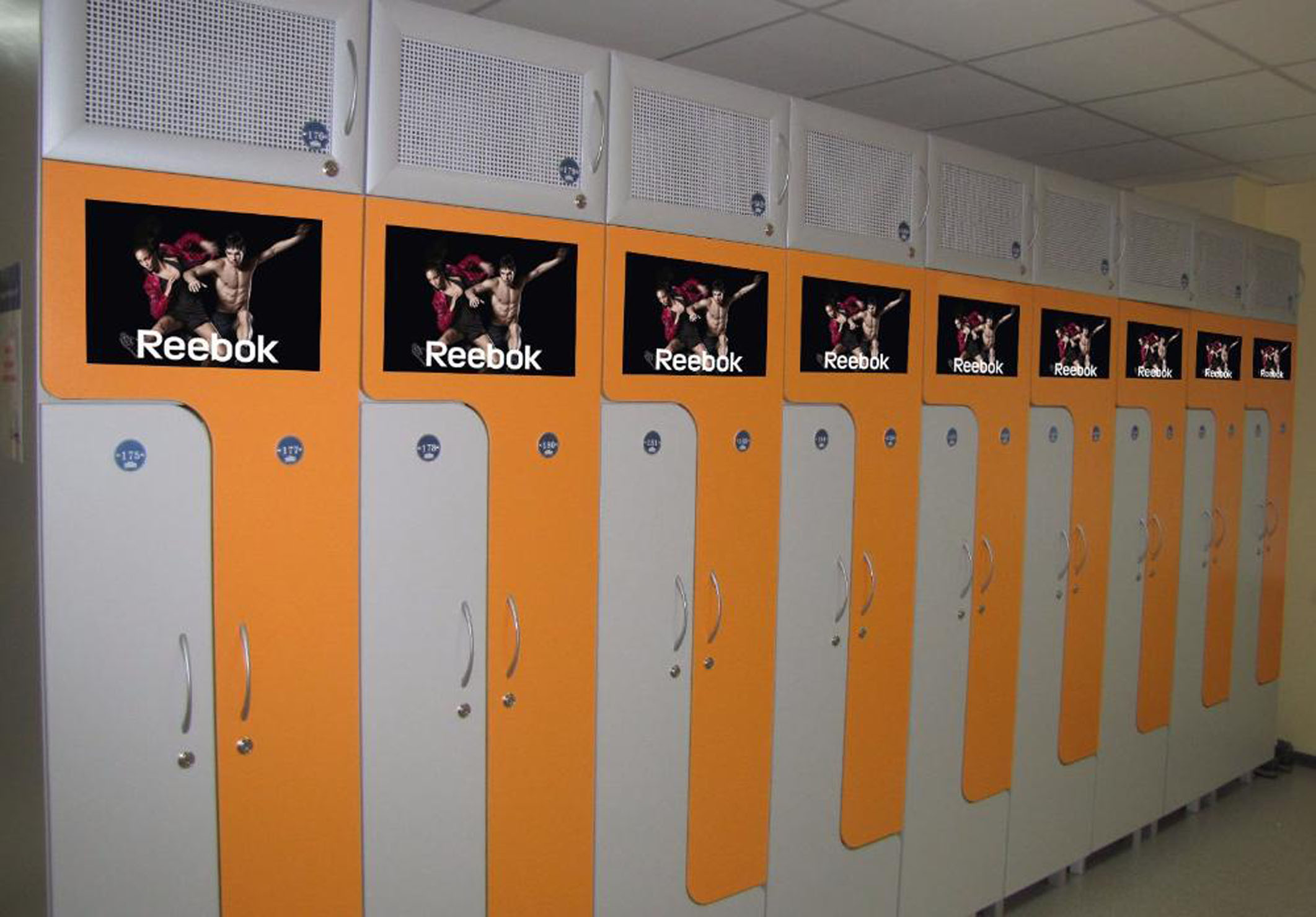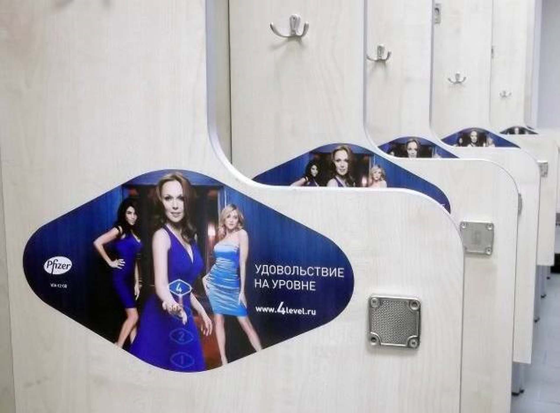Пример рекламы на шкафчиках в фитнес-клубе: